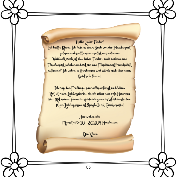Ich heiße Klara. Ich habe in einem Buch von der Flaschenpost